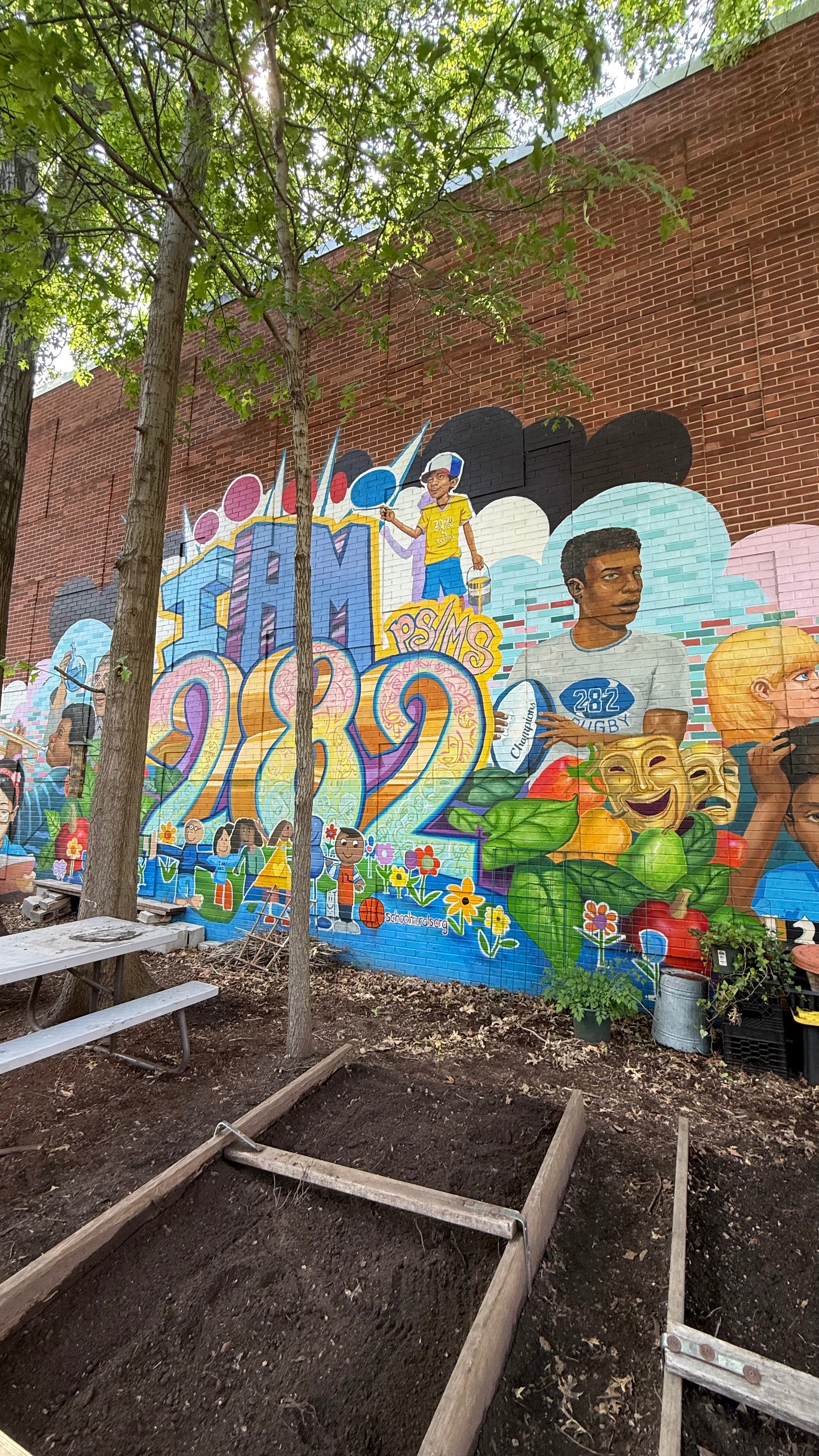 The school’s original flower boxes were in rough shape, so we got to work building oversized replacements using pressure-treated lumber designed to stand up to New York weather (and elementary school energy). Now, PS 282 has a sturdy, fresh set of planters ready for planting, learning, and growing.