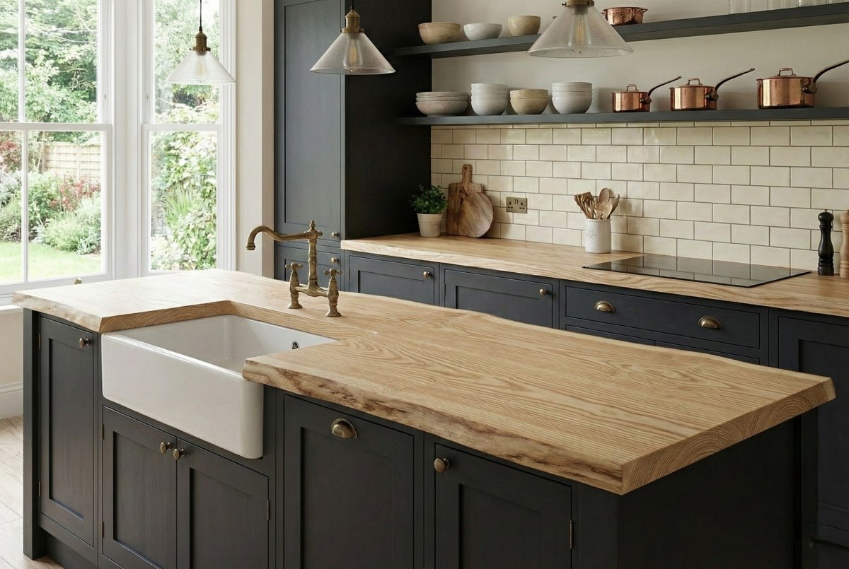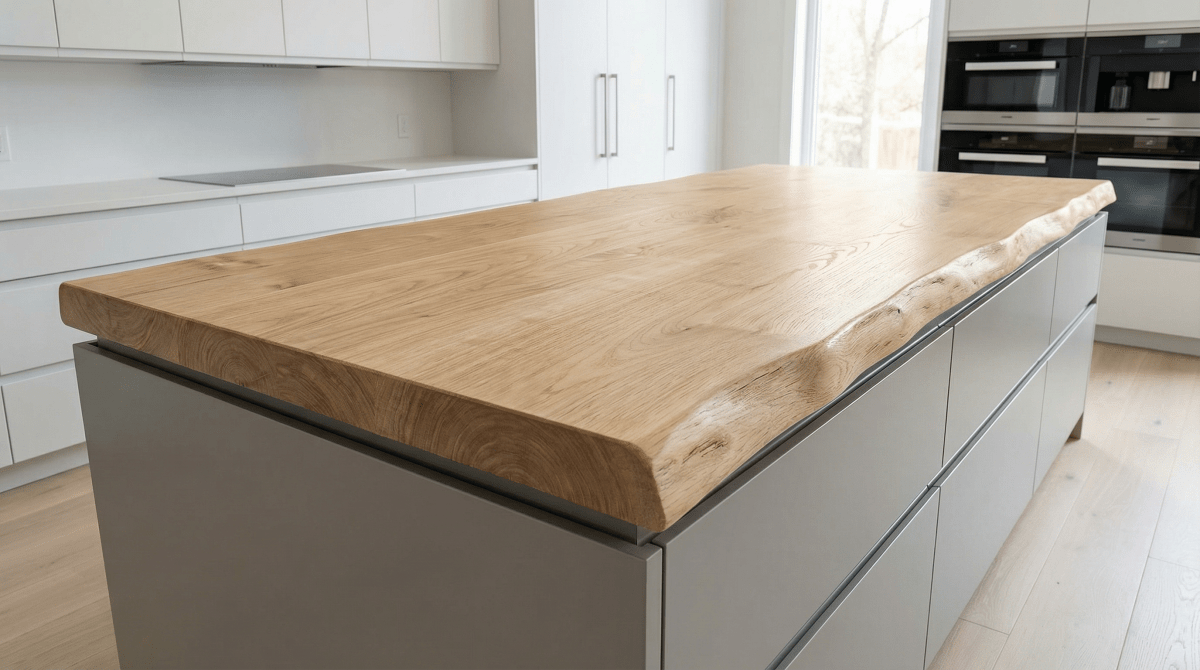 Timeless, versatile, and full of character, a White Oak live edge countertop brings refined craftsmanship and a calm, modern aesthetic to any space.