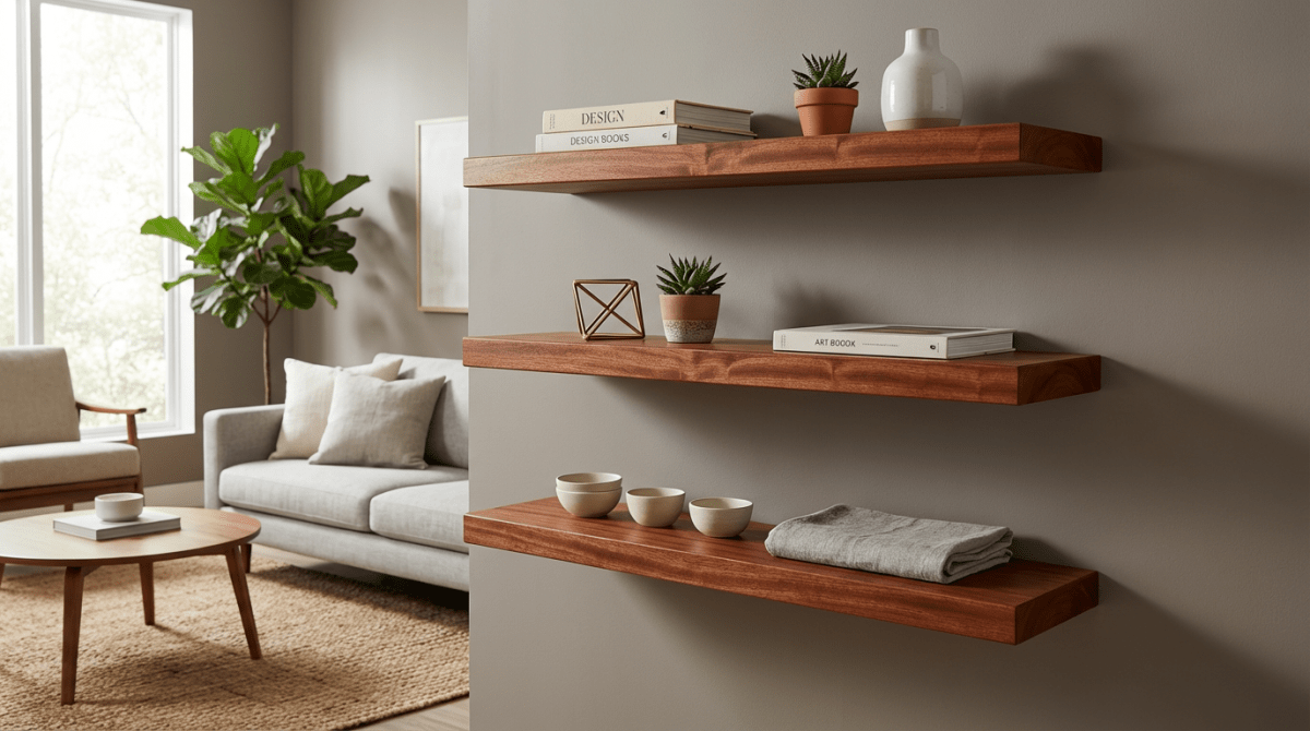 Mahogany Wood Floating Shelves