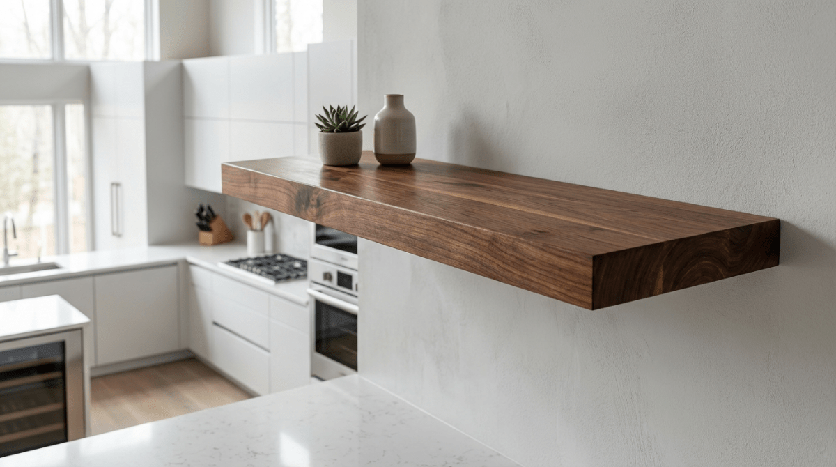 Our hardwood shelves are designed for kitchens, living rooms, bathrooms, home offices, retail displays, and commercial environments. Each shelf is custom-sized and crafted from premium hardwood, making it strong enough for décor, dishware, books, and everyday storage while maintaining a clean, modern look.