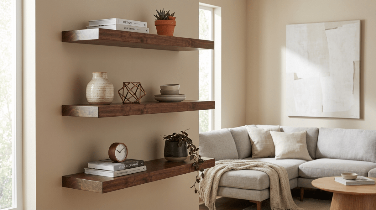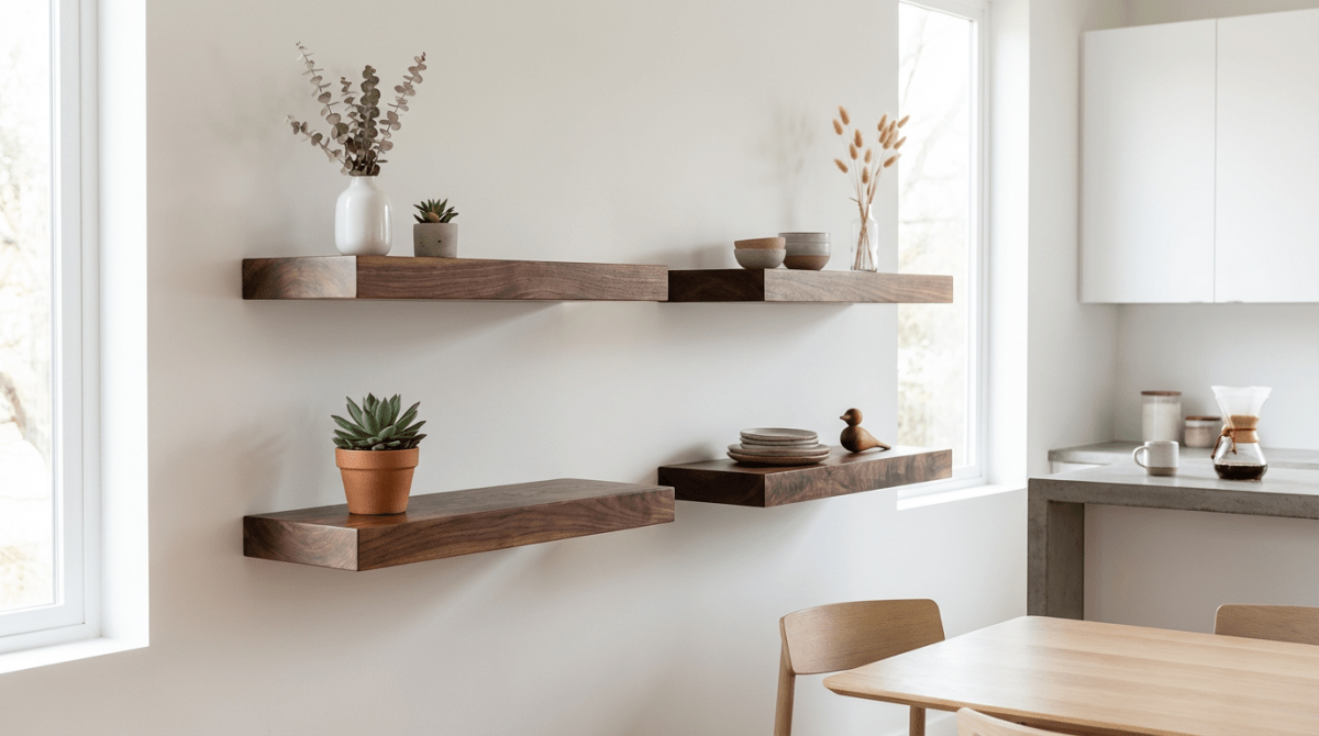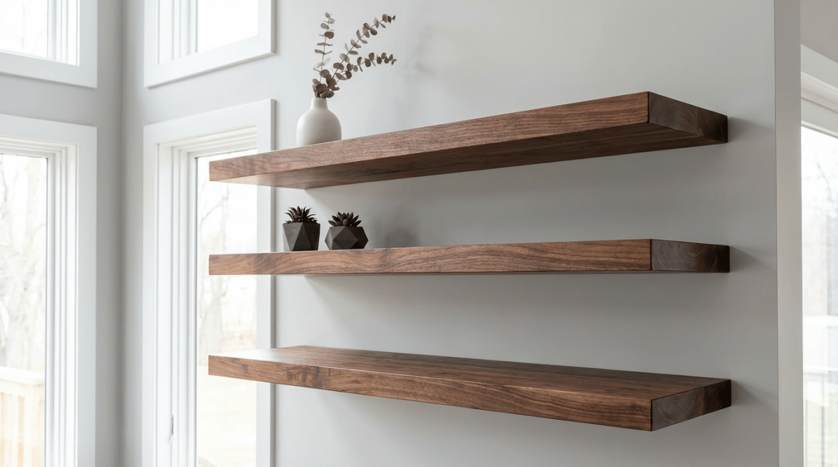 Walnut Wood Floating Shelves
