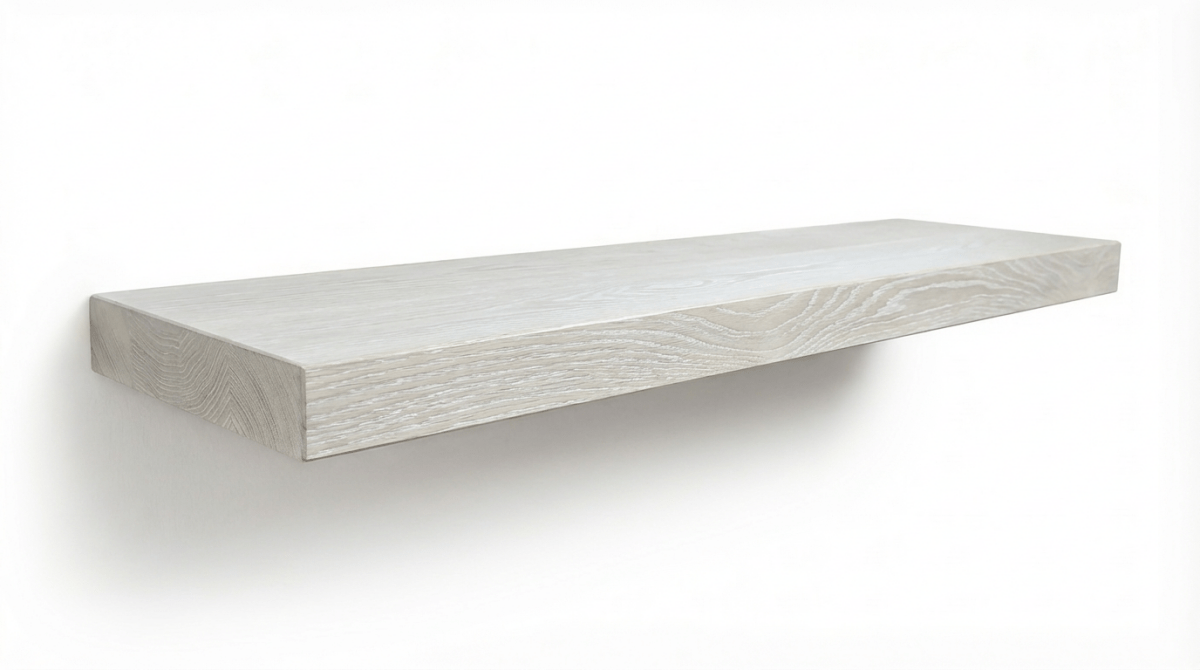 Our Arctic Oak floating shelves feature a crisp white finish with subtle, refined grain detail beneath the surface, creating a bright, modern shelving option that blends seamlessly into contemporary spaces. This specialty White Oak style provides a clean architectural look while still retaining the natural texture and authenticity of real hardwood.