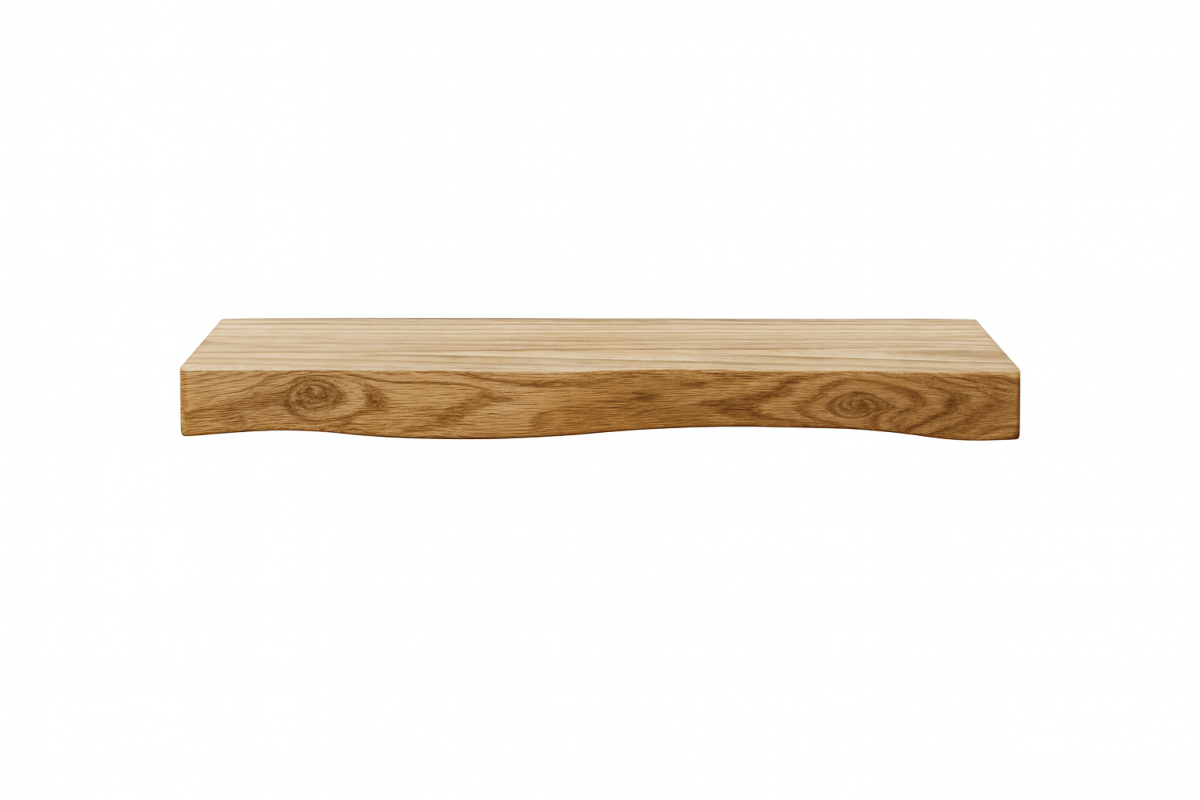 Precision-milled from solid Ash hardwood, these floating shelves offer a unique blend of natural edge artistry and bright hardwood presence—perfect for decorative displays, styled wall arrangements, or everyday storage with a distinctive, handcrafted look.