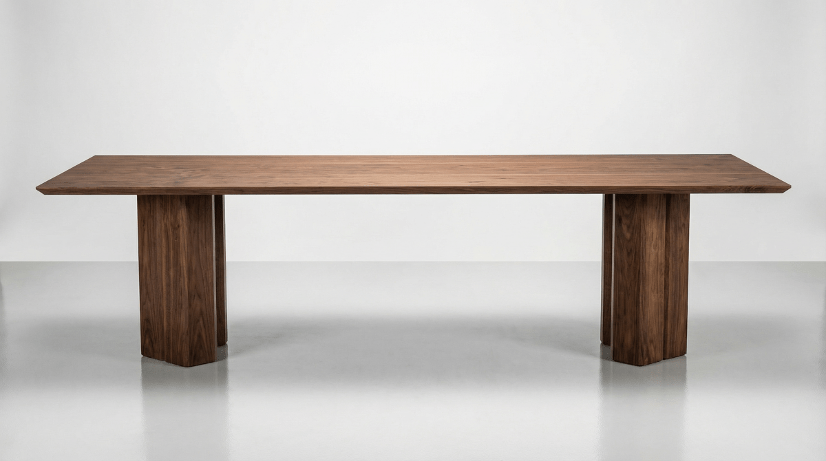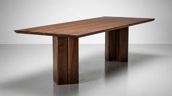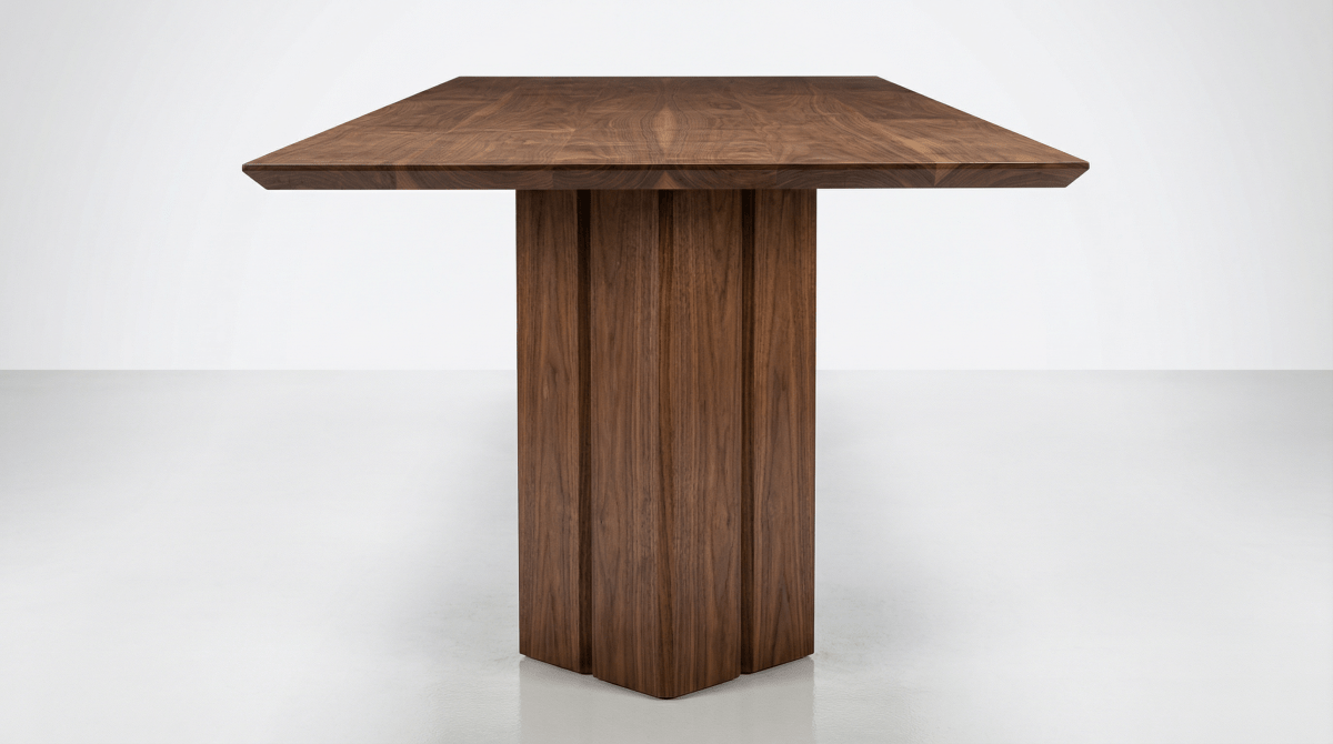 In the Vekt Dining Table, bold geometry and restraint come together. A wide-plank solid hardwood top is paired with monolithic legs, creating a grounded, architectural form. Designed exclusively by Hardtwood and handcrafted in the USA from solid Grade-A walnut.