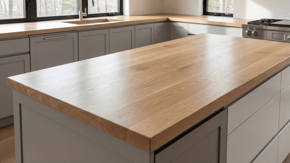 - Finish & Color Options — Choose from our full range of stain and natural finish colors to match your cabinets, flooring, or décor. All finishes are 100% VOC-free for a safe, durable surface.